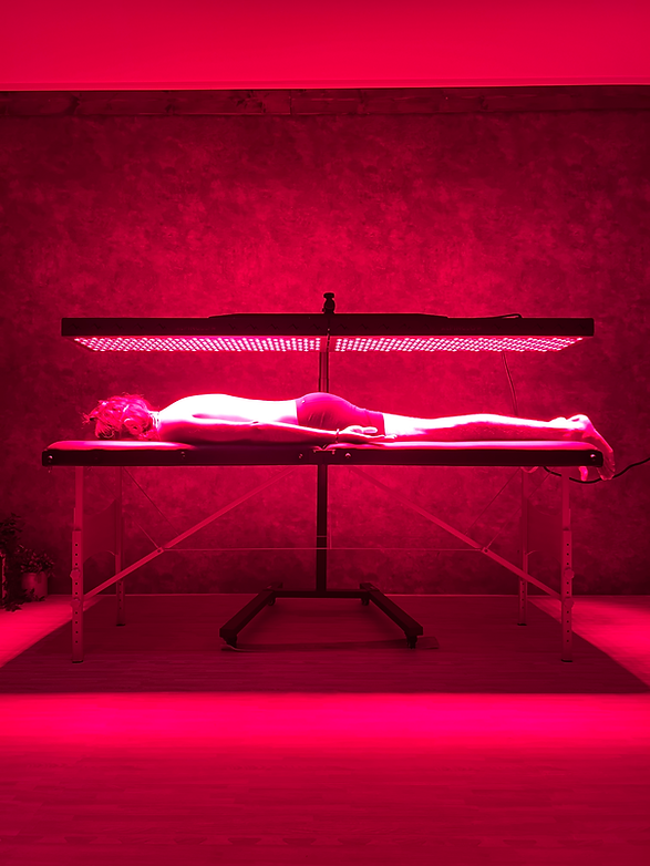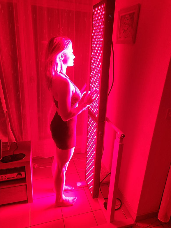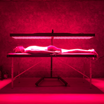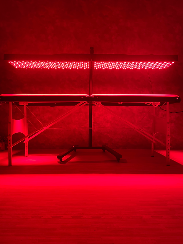 Panel for the body and a mask for the face and neck, with a stand for the panel. Red light therapy, also recognized as photobiomodulation is a progressive technique that serves as a powerful antiinflammatory aid, promoting skin health, enhancing muscle recovery and faster injury recovery.